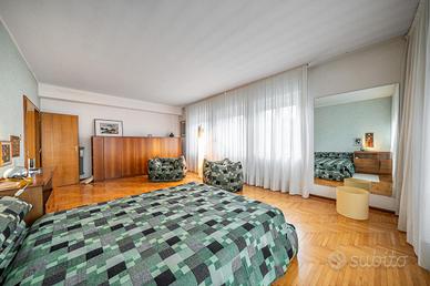 Dal salotto si accede al corridoio che conduce alla zona notte. In questo corridoio è presente la seconda porta d'ingresso, oltre ad un secondo bagno finestrato. La zona notte è attualmente composta da quattro stanze: Una matrimoniale di oltre 27mq, Una doppia con bagno privato, al momento allestito come lavanderia, e altre due camere doppie.