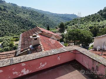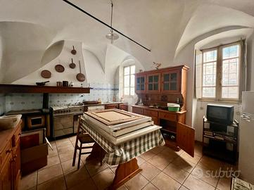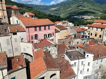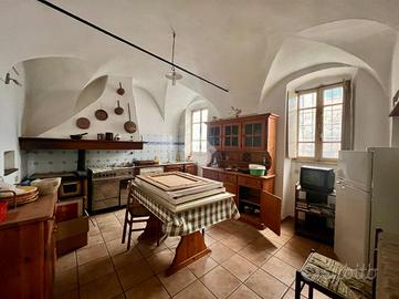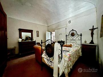Piano Rialzato: L'ingresso si apre su un disimpegno che conduce a una spaziosa cucina abitabile, un soggiorno, e una sala da pranzo. Da qui si accede a un'ampia terrazza con una splendida vista panoramica sul borgo e sulla vallata. Completano il piano una camera da letto e un bagno. Piano Primo: Al piano superiore, un ampio salone funge da disimpegno per quattro camere da letto, un secondo bagno, e una terrazza a loggia. Corpo Secondario