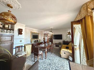 L'ingresso si apre su un ampio e luminoso salone, vero cuore pulsante della casa, che regala una sensazione di accoglienza e familiarità. Alla sua destra si trova una cucina abitabile con accesso diretto al terrazzo vista mare, perfetta per vivere al meglio gli spazi esterni durante tutto l'anno.