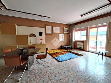 L'appartamento presenta un ingresso ampio e luminoso da cui si accede alla zona giorno composta da un un grande soggiorno, studio e cucina con annessi doppio servizio con doccia, lavanderia e ripostiglio. I tre ambienti sono collegati all'esterno da un grande terrazzo che affaccia sulla Via Archimede. La zona notte, anch'essa molto luminosa, presenta tre camere da letto e un bagno con vasca .
