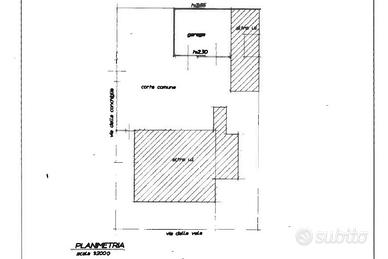 Al piano terra si apre un'ampia area cortilizia all'interno della quale si trovano un garage di ben 36 mq e vari locali di deposito.