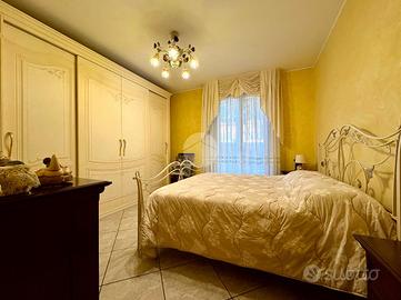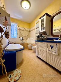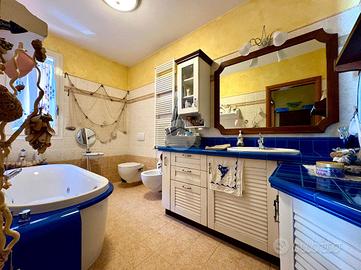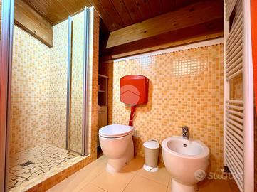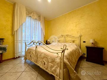 Sempre al piano terra troviamo un bagno e una camera matrimoniale, ideale sia come stanza principale sia come comoda camera per ospiti o persone che preferiscono evitare le scale.