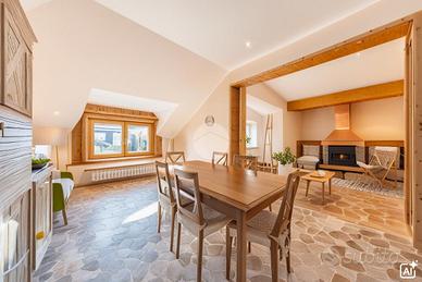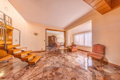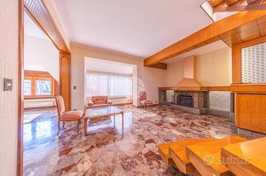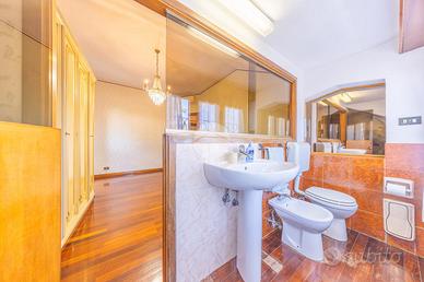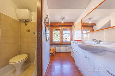 Varcata la soglia, l'ingresso signorile si apre su un ampio e luminoso salone con camino, il cuore dell'abitazione, che regala un'atmosfera accogliente e raffinata. Da qui, si accede a un terrazzino che affaccia sul verde circostante, ideale per godere di momenti di relax all'aria aperta. La sala da pranzo è perfetta per ospitare cene eleganti, mentre la camera adiacente alla sala da pranzo al piano principale offre uno spazio tranquillo e intimo.