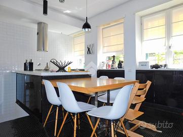 All'interno di un elegante comprensorio con servizio di portineria, proponiamo in vendita un immobile di ampia metratura, disposto su due piani e caratterizzato da ambienti luminosi e ben distribuiti.