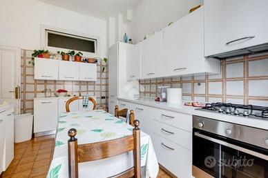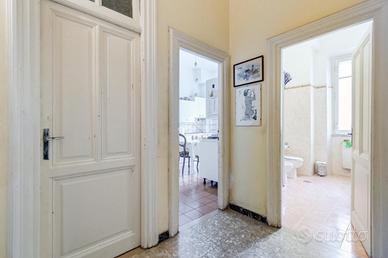 L'appartamento, posto al secondo piano su rialzato di un elegante palazzo d'epoca, si compone di sette camere spaziose e luminose, tutte da personalizzare, con la libertà di creare spazi confortevoli e accoglienti. Gli ampi ripostigli e la cucina abitabile con balcone aggiungono un tocco di comodità e funzionalità. Inoltre, i due bagni finestrati , di cui uno en-suite, offrono un comfort in più in una soluzione dal grande potenziale.
