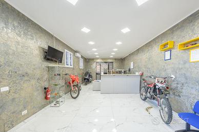 Attualmente utilizzato per la compravendita e il noleggio di auto, il locale si presta perfettamente anche ad altre destinazioni commerciali o attività di servizi.