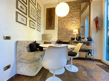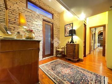 La proprietà, completamente arredata con gusto, si apre su un accogliente ingresso che conduce a un salone doppio con annessa sala da pranzo; qui gli spazi convivono con coerenza stilistica, offrendo un'atmosfera raffinata ma al tempo stesso calda e familiare.