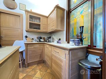La cucina con tinello è funzionale e attrezzata con arredi su misura ed elettrodomestici integrati, perfetta fusione tra praticità e comfort.