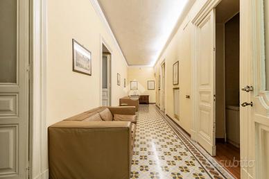 Nel cuore più autentico di Roma, tra Piazza Navona e Campo de' Fiori, proponiamo in vendita un elegante appartamento di ampia metratura, situato al primo piano del celebre Palazzo Torlonia, edificio storico di grande pregio architettonico, dotato di ascensore e servizio di portineria. L'immobile, con una superficie di circa 205 mq, dispone di doppio ingresso e una distribuzione degli spazi che si presta sia a un utilizzo residenziale che professionale. Internamente è composto da un ampio salone con angolo cottura, tre camere da letto (di cui una con camino), due servizi e un balcone con affacci interni che garantiscono silenzio e privacy. La doppia esposizione e le numerose finestre rendono l'ambiente particolarmente luminoso, mentre i soffitti alti 3,30 metri e il parquet nelle camere aggiungono eleganza e carattere agli spazi. L'appartamento è da ristrutturare, con notevoli possibilità di personalizzazione: le pareti tramezze presenti consentono di modulare facilmente la disposizione interna secondo gusti e necessità. La proprietà si trova in una posizione strategica, su Corso Vittorio Emanuele II, a breve distanza da Castel Sant'Angelo, Trastevere, Piazza Venezia e dalle principali attrazioni storiche e culturali della città. Un'opportunità di sicuro interesse, in uno dei contesti più esclusivi della capitale, dove storia, prestigio e qualità della vita si incontrano in modo armonioso. Per informazioni o per organizzare una visita riservata: 351.804.6473 oppure al