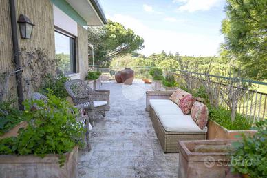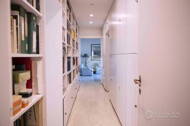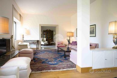 Via Vitellia - In una delle vie più esclusive del quartiere Monteverde, aperto sulla magnifica Villa Doria Pamphili, proponiamo in vendita un attico e super attico con vasto terrazzo panoramico di rara eleganza, caratterizzato da grande luminosità, silenzio e affacci unici sul verde e sulla cupola di San Pietro. Questa proprietà, concepita dal riconosciuto architetto Michele Busiri Vici, si sviluppa su due livelli, caratterizzati da ambienti ampi e proporzionati, volti a valorizzare al massimo luce naturale e vivibilità. Gli interni sono impreziositi da una selezione di materiali di alto pregio, che conferiscono all'abitazione un'identità intemporale di forte rappresentanza. Si accede all'appartamento con un ascensore che apre privatamente in casa. L'arrivo accoglie su un elegante ingresso e una scala di marmo che separano la zona giorno dalla zona notte. La prima si compone di un doppio salone di ricevimento con accesso al terrazzo impreziosito da un parquet di quercia francese a tavole larghe e ampie finestre panoramiche che incorniciano il parco e assicurano luce naturale durante l'intero arco della giornata. La sala da pranzo, aperta e luminosa, è affiancata da una grande cucina separata, ristrutturata in rovere e marmo. Sul medesimo piano si sviluppa la zona notte, composta da tre camere da letto finemente arredate, con portefinestre che accompagnano al terrazzo, regalando luce, privacy e affacci nel verde. I tre bagni, di cui due en suite, rifiniti con materiali di pregio, sono impreziositi da lavabi antichi in pietra naturale di tradizione romana. Tutte le camere e corridoi sono muniti di grandi armadi a muro. Completa il livello un terrazzo panoramico che circonda l'appartamento garantendo un'esposizione a 360° di luce e viste suggestive, nel quale, su parte del terrazzo, vi è una veranda vetrata di 47 mq. Ristrutturato integralmente nel 2017, il livello è stato migliorato con infissi ad alte prestazioni e impianto di climatizzazione a doppio flusso.