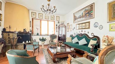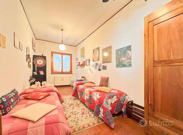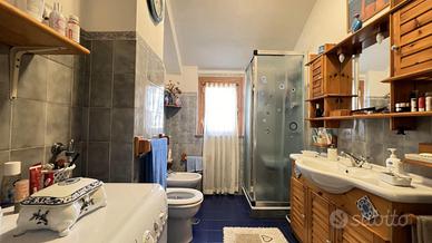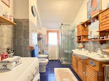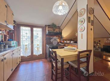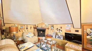 Entrando si viene accolti da una spaziosa cucina abitabile con camino, con accesso diretto ad un comodo terrazzo. Proseguendo troviamo un bagno con doccia, una camera matrimoniale e una seconda stanza attualmente utilizzata come studio, dotata di bagno interno, che può facilmente adattarsi ad esigenze diverse come cameretta o stanza per gli ospiti.