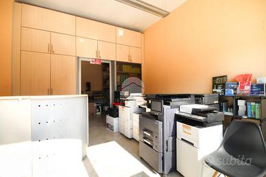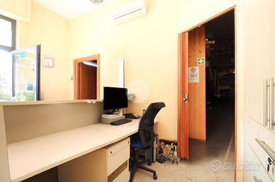 La soluzione è attualmente suddivisa in: ingresso con angolo reception, ripostiglio, ufficio, ampio open space e bagno finestrato con antibagno.