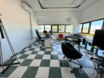 In zona industriale a San Cesareo, a ridosso del casello autstradale A1, vi proponiamo in locazione un ufficio completamente rifinito e di ampia metratura, situato al piano primo di un capannone ben mantenuto. L'immobile è composto da cinque stanze ben distribuite, di cui una predisposta con allacci per la cucina, oltre ad un doppio bagno ed un comodo ripostiglio. Gli ambienti risultano luminosi e versatili, adatti a diverse tipologie di attività; ogni stanza dispone di climatizzatori, troverete inoltre l'impianto di allarme già installato e nella locazione è compresa anche l'utenza dell'acqua. NO CONDOMINIO!