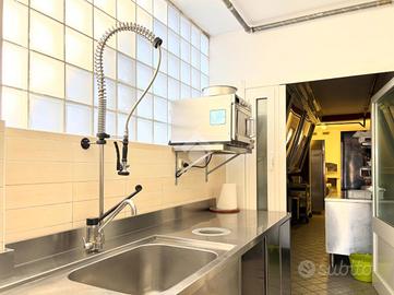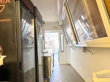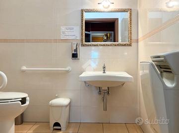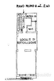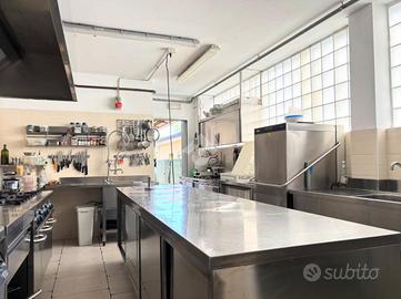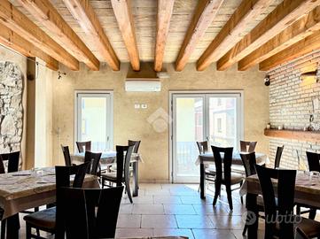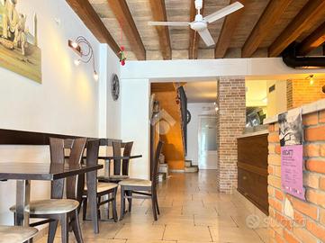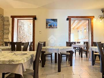 Al piano terra si trova la zona bar con bancone e forno per pizza, posti a sedere, cucina attrezzata e bagno per disabili.