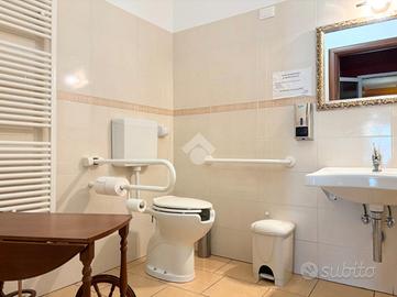 Le travi in legno a vista conferiscono calore e charme all'intero locale, rendendolo una soluzione pronta all'uso, elegante e funzionale, nel pieno centro cittadino.