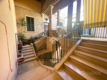 In centro storico a San Severo, proponiamo in vendita un affascinante appartamento d'epoca, impreziosito da dettagli architettonici unici come le volte a botte e l'ingresso scenografico, caratterizzato da colonne e mattoncini a vista. L'immobile si apre su un elegante vano d'ingresso da cui si diramano gli ambienti principali: un primo salottino accogliente, un secondo soggiorno con angolo cottura e affaccio diretto su Via Roma, due camerette e una camera da letto padronale con balconcino interno affacciato sull'androne. Completa la zona abitativa un bagno funzionale. Un ulteriore valore aggiunto è rappresentato dal terrazzo panoramico: salendo le scale si incontra un comodo vano deposito, per poi raggiungere il secondo piano dove si apre un ampio terrazzo, ideale per momenti di relax e convivialità, da cui si gode una vista senza paragoni sui caratteristici tetti e campanili di San Severo. L'appartamento, dal fascino signorile e senza tempo, offre inoltre la possibilità di parcheggiare la propria auto all'interno dell'androne del palazzo, un dettaglio raro e prezioso in pieno centro storico. Un'opportunità unica per chi desidera vivere o investire in una residenza di prestigio, nel cuore pulsante della città.