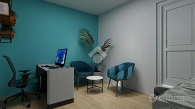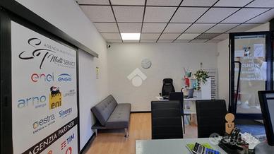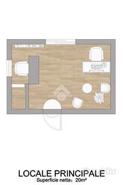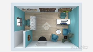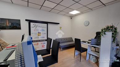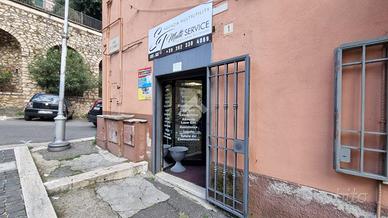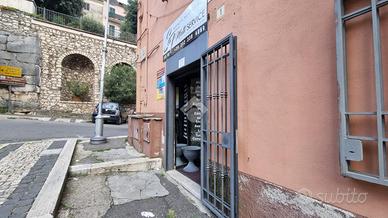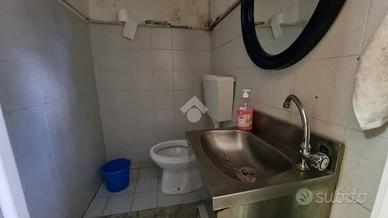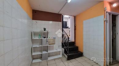 Il locale presenta all'ingresso una zona per l'accoglienza clienti con un piccolo ripostglio, un bancone in muratura e finestra.