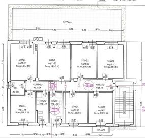 La zona giorno, ben esposta, è luminosa e dispone di accesso al grande terrazzo di 75 mq. Le altre sei stanze godono di generose metrature. I bagni sono ambe due finetrati e dotati di box doccia. La soluzione dispone inoltre, al piano interrato, di cantina e di due box auto.