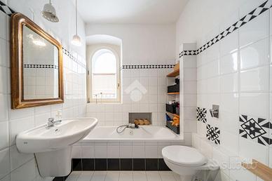 L'appartamento è composto da cinque camere da letto ,tre matrimoniali e due doppie, con la zona notte impreziosita da pavimenti in rovere di larice originale dell'epoca. I bagni sono due: il principale è finestrato e dotato sia di box doccia che di vasca; il secondo, ideale come bagno di servizio o per gli ospiti, dispone di box doccia, i locali sono impreziositi dalle bellissime porte del 700'.