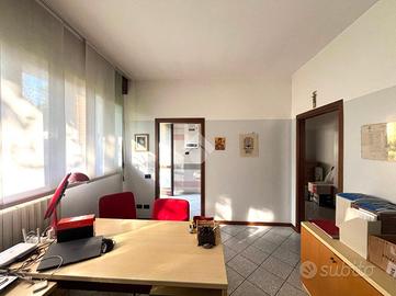 UFFICIO AL PIANO TERRA CON RISCALDAMENTO AUTONOMO E COMPLETO DI BOX. In posizione comoda e ben servita, luminoso ufficio / studio al piano terra di un condominio tranquillo con riscaldamento autonomo. L'immobile ad oggi è composto da tre stanze, oltre a un bagno e a un giardino privato che offre uno spazio verde e riservato per pause all'aperto. Soluzione ideale per professionisti, studi tecnici, medici o attività di consulenza che cercano un ambiente comodo e accogliente. Completa la proprietà una comoda autorimessa di 15 mq circa al piano interrato.