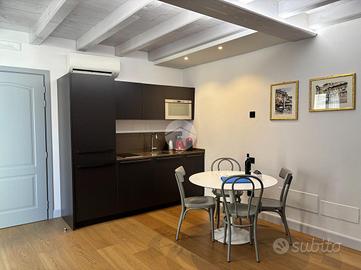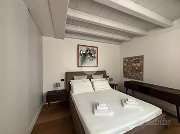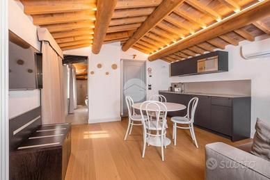 Ogni bilocale presenta una ristrutturazione di pregio, effettuata per valorizzare al meglio ogni minimo dettaglio interno e per rendere tale soluzione unica nel suo genere. Internamente composti da soggiorno con angolo cottura, una camera matrimoniale ed un bagno finestrato, riscaldamento centralizzato a radiatori e aria condizionata con split in ogni unità. Completa l'intera abitazione una corte interna esclusiva, facilmente utilizzabile anche come posto auto con capienza massima di circa tre automobili.