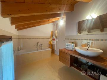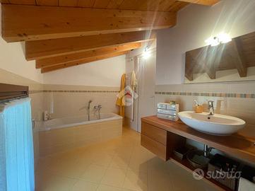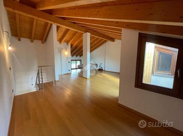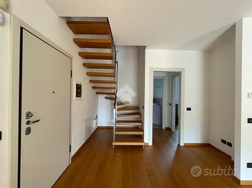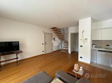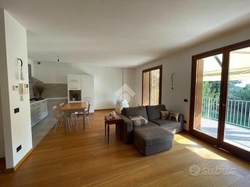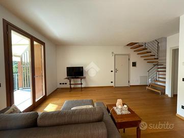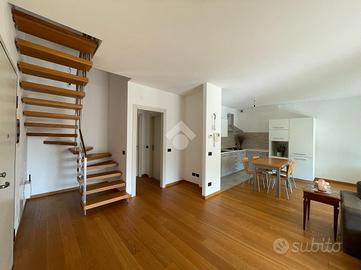 VILLA D'ALME' In zona residenziale ed esclusiva del paese proponiamo in vendita recente e luminoso appartamento disposto su due livelli, in ottimo contesto condominiale. La soluzione si compone di: ampia zona giorno con doppia portafinestra per l'accesso alla terrazza con vista, dove poter collocare una comoda zona divanetti ed un tavolo da pranzo; al piano oltre alla zona cottura, un disimpegno ci accompagna alla prima camera da letto e al primo dei due bagni con mobilio di falegnameria su misura. Entrambi gli ambienti hanno accesso al funzionale balcone. Attraverso l'elegante scala interna raggiungiamo il piano secondo, ancora aperto ma predisposto per la realizzazione di 2/3 camere per la zona notte. Al piano abbiamo anche il secondo bagno, finestrato con vasca ed un terrazzo a pozzo. Contraddistinguono la proprietà finiture di pregio, extra capitolato, a partire dal pavimento in parquet di rovere, la scala interna, alle porte ed i serramenti esterni del piano superiore. Immobile dotato di impianto d'allarme, tende da sole sul terrazzo, due autorimesse a piano interrato.