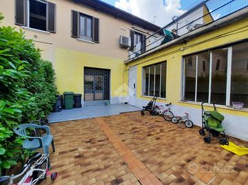 Attualmente il negozio è suddiviso con quattro ambienti divisi ed ha nella parte posteriore un cortile di proprietà di circa 40 mq.
