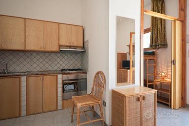 Appartamento al primo piano da 6 posti letto composto da soggiorno con angolo cottura, camera matrimoniale, bagno con doccia, balcone, patio al piano terra, divano-letto 2 posti, cameretta con letto singolo, aria condizionata, cassetta di sicurezza, asciugacapelli, telefono (abilitato solo alla ricezione) e TV.