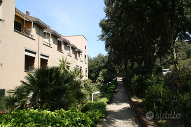L'appartamento è su due livelli con scala interna, così costituito: il primo livello è un grazioso loft con all'esterno terrazzino sul parco vista mare e ripostiglio con caldaia a gas, all'interno soggiornino con divano letto matrimoniale, zona pranzo con angolo cottura (piastra e forno elettrici), comodo bagno con vasca; il secondo livello (full privacy) ha tre comodi letti di cui due a castello e bagno con doccia, affaccio sul loft e lucernario apribile e regolabile. Il tutto molto ben arredato e curato, luminoso, fresco e ben aerato, completo di accessori vari pranzo-cucina, acqua calda e riscaldamento autonomi, TV e internet wireless access. Include un posto auto coperto assegnato e un posto auto esterno libero in zona protetta, deposito bici e un locale lavanderia a gettoni.