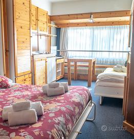 In Trentino, nel cuore della Val di Sole, dominata dall'Adamello e dalle Dolomiti del Brenta, Marilleva 1400 è una stazione integrata giovane e familiare, progettata su misura per lo sci ad ogni livello. Il comprensorio è composto da condomini, alberghi, villaggi turistici e residence, costruiti tutti nello stesso stile moderno e razionale. Tra tutti spicca per importanza il Residence Vigo di Marilleva, magnificamente organizzato per ospitare adulti e bambini. Il residence si trova a 10mt dagli impianti. Alla partenza della Cabinovia del Copai si arriva sci ai piedi al carosello sciistico Skirama, Dolomiti del Brenta, con gli impianti di Folgarida, Marilleva e Madonna di Campiglio. Appartamento con balcone con vista bosco 4 posti letto - struttura con animazione, piscina, sauna, palestra ecc. 33 esima settimana dell'anno che coincide con la terza di agosto. La casa è costituita da una cameretta con due letti a scomparsa, una camera grande con una porta scorrevole che delimita la camera da letto con letto a scomparsa. Zona giorno dove troverete cucina forno lavastoviglie oltre che pentole e utensili. Animazione diurna e serale per adulti e bambini