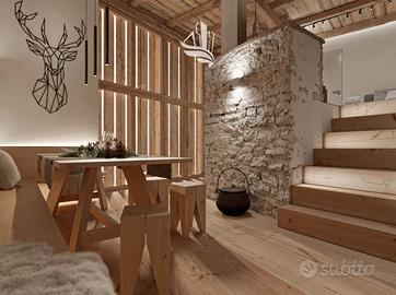 Il progetto prevede un attento intervento di recupero conservativo su un'antica struttura rurale alpina, composta da un corpo in pietra storica e da fienili adiacenti con tipica struttura lignea. L'obiettivo è mantenere l'identità architettonica originaria, preservando le volumetrie esistenti, e allo stesso tempo realizzare unità abitative moderne e confortevoli. Gli spazi interni saranno trasformati in alloggi residenziali di qualità, senza comprometterne il valore storico e paesaggistico.