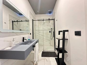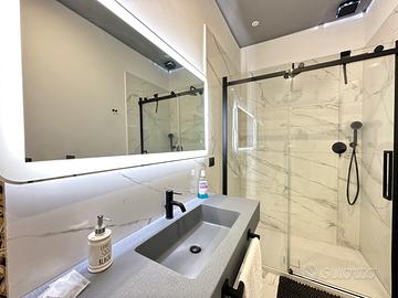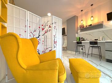 L'ingresso è aperto sulla zona giorno con angolo cottura a vista mentre la zona notte è nascosta da un separè, offrendo un senso di riservatezza all'ambiente. Il bagno è ampio, con doccia. I materiali utilizzati nella ristrutturazione -del 2022- sono di ottima finitura e in chiave moderna, così come gli arredi.