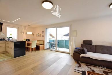 L'appartamento luminoso è stato completamente ristrutturato nel 2022 e si estende su 2 livelli. Si posta al 2° piano con ascensore di un piccolo condominio con poche unità abitative e attualmente è composto da soggiorno con cucina, camera da letto, 2 bagni e balcone. Tuttavia, può essere facilmente trasformato in un trilocale con piccoli lavori di ristrutturazione. Un garage con cantina può essere acquistato separatamente al prezzo di 35.000 €, mentre un posto auto è disponibile al prezzo di 15.000 €. La posizione centrale garantisce nel raggio di 5/10 minuti a piedi, servizi per tutte le esigenze: supermercato, scuola, piscina e farmacia. L'appartamento può essere consegnato a partire da subito, arredamento incluso nel prezzo.