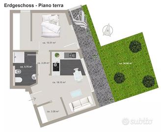 L'appartamento, oggetto di una completa ristrutturazione nel 2025, offre comfort abitativo moderno e spazi ben distribuiti. La zona giorno è concepita in stile open space, con soggiorno e cucina integrati in un ambiente luminoso e accogliente. Le due camere da letto garantiscono spazio e tranquillità per il riposo, mentre il bagno completa la funzionalità dell'unità. Dal soggiorno si accede direttamente alla terrazza, che conduce a un giardino privato di circa 95,00 m² - ideale per rilassarsi all'aperto.