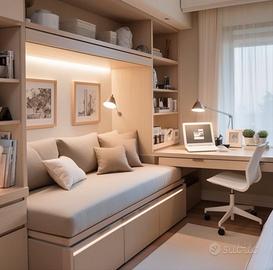 oAmpio soggiorno con angolo cottura di 32 mq, reso luminoso da vetrata scorrevole;