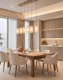 oAmpio soggiorno con angolo cottura di 32 mq, reso luminoso da vetrata scorrevole;