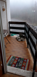 Terrazzo con vista sul colle. Tutti gli arredi sono in legno e realizzati su misura. ( a disposizione per invio di altre foto)