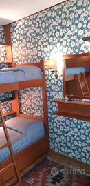Zona notte con letto a castello e armadio, antibagno con lavatrice e spazio appendiabiti.