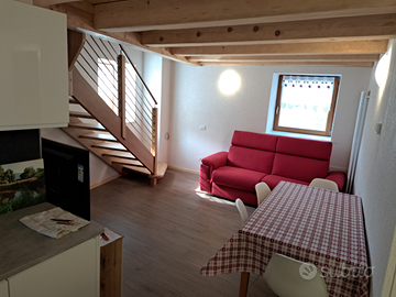 -Al piano terra, un comodo divano letto matrimoniale si apre in una luminosa zona giorno, perfetta per rilassarsi dopo una giornata all'aperto.