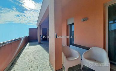 Luminosissimo, in quanto lappartamento ha grandi porte finestre scorrevoli che fanno entrare veramente molta luce che danno accesso alla grande terrazza con vista aperta.