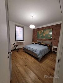 All'interno di una cascina, a pochi minuti dalla fermata metropolitana (linea rossa) Molino Dorino e ben collegata dal bus 80, proponiamo trilocale di 150 mq composto da: ingresso, soggiorno, cucina abitabile e completa di elettrodomestici (piano ad induzione, di due forni, lavastoviglie, microonde), due camere da letto matrimoniali dotate entrambe di bagno privato.