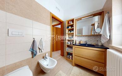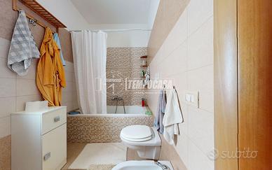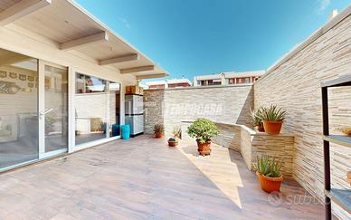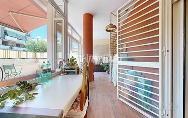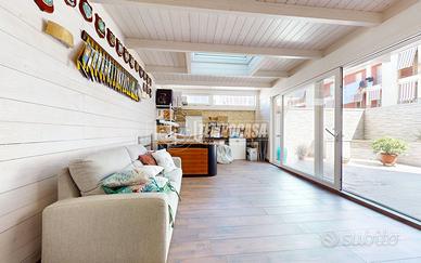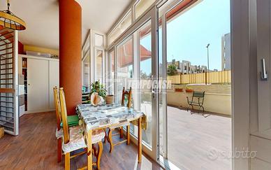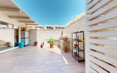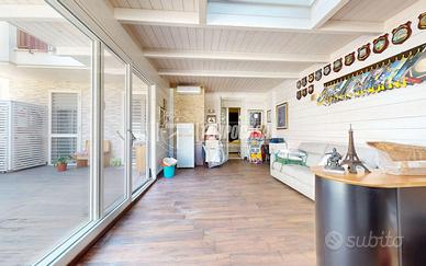 Uno dei principali punti di forza di questa soluzione è la presenza di due ampi patii esterni ad uso esclusivo. Il primo, collegato alla zona giorno tramite due portefinestre, ospita una veranda chiusa di circa 18 mq, ideale come studio, area lettura o spazio relax, con armadio a muro già installato. Da qui si accede al patio esterno di 34 mq, rifinito con fioriere in muratura, tende da sole e un comodo cancelletto privato. Il secondo spazio esterno, accessibile da tutte le camere da letto, si compone di una veranda coperta da una tettoia in legno di circa 40 mq, perfetta come zona hobby o palestra, oltre a un ulteriore spazio scoperto con fioriere, ideale per chi cerca privacy e versatilità.
