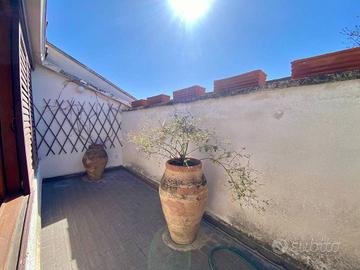 (192274212) - Adiacente piazza Roma, all'interno di una antica ed esclusiva villa costruita nel XIX secolo, proponiamo la vendita della NUDA PROPRIETA' di un appartamento con terrazza e tre posti auto. L'immobile è posto al 2° piano e si sviluppa su due elevazioni e ha una superficie coperta di 200 mq circa. Nella prima elevazione, di 125 mq, troviamo la zona giorno composta da salone di due vani, cucina abitabile, soggiorno con camino, un bagno ed un vano studio; dal salone si accede ad una terrazza di 65 mq con vista aperta su aree a verde. La seconda elevazione, di 75 mq circa, è composta da tre camere da letto, una delle quali con un terrazzino e le altre con aperture a vasistas, ed un'ampia sala da bagno. Le rifiniture sono di buona qualità, la pavimentazione è in parquet nella zona giorno, cotto nella zona notte, la cucina è in muratura con ceramiche decorate, sono presenti il riscaldamento con caldaia a metano e climatizzatori a pompa di calore. L'unità immobiliare gode di tre esposizioni pertanto risulta luminosa e soleggiata. Fanno parte della vendita tre posti auto coperti della superficie di 40 mq. Il contesto e l'ubicazione rendono la proprietà esclusiva ed il valore storico è e rimarrà immutato nel tempo. (A.P.E. in fase di rilascio)