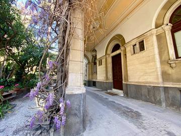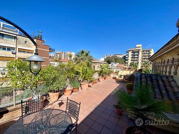 Rif:(110703613) - Adiacente piazza Roma, all'interno di una antica ed esclusiva villa costruita nel XIX secolo, proponiamo la vendita della NUDA PROPRIETA' di un appartamento con terrazza e tre posti auto. L'immobile è posto al 2° piano e si sviluppa su due elevazioni e ha una superficie coperta di 200 mq circa. Nella prima elevazione, di 125 mq, troviamo la zona giorno composta da salone di due vani, cucina abitabile, soggiorno con camino, un bagno ed un vano studio; dal salone si accede ad una terrazza di 65 mq con vista aperta su aree a verde. La seconda elevazione, di 75 mq circa, è composta da tre camere da letto, una delle quali con un terrazzino e le altre con aperture a vasistas, ed un'ampia sala da bagno. Le rifiniture sono di buona qualità, la pavimentazione è in parquet nella zona giorno, cotto nella zona notte, la cucina è in muratura con ceramiche decorate, sono presenti il riscaldamento con caldaia a metano e climatizzatori a pompa di calore. L'unità immobiliare gode di tre esposizioni pertanto risulta luminosa e soleggiata. Fanno parte della vendita tre posti auto coperti della superficie di 40 mq. Il contesto e l'ubicazione rendono la proprietà esclusiva ed il valore storico è e rimarrà immutato nel tempo. (A.P.E. in fase di rilascio)