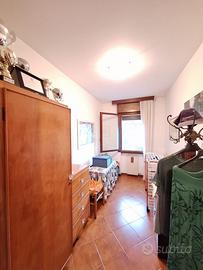 Vendesi a San Pio X, in contesto molto ben tenuto, nuda proprietà di un appartamento di metà anni'80, sito al primo piano senza ascensore, composto da: ingresso, ampio soggiorno con terrazzo comunicante con la cucina, cucina abitabile, disimpegno, 1 camera da letto matrimoniale con ampio terrazzo in lunghezza, 1 camera da letto singola, 1 studio (uso terza camera), 2 bagni. Al piano terra troviamo un comodo garage e una cantina di proprietà esclusiva.