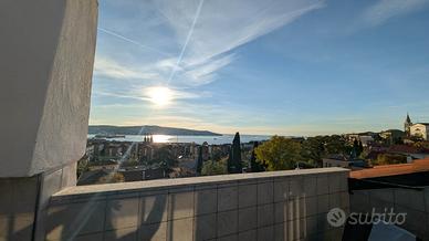 VENDITA NUDA PROPRIETÀ Nel cuore della via principale del caratteristico e storico rione di Servola, proponiamo luminoso appartamento all'ultimo piano con mansarda collegata internamente e splendida vista mare. L'abitazione di 108 mq vanta una distribuzione interna ottimale, offrendo ambienti ampi e confortevoli: si compone di ingresso, ampio soggiorno con accesso diretto al poggiolo panoramico, ideale per godere del sole e dei tramonti sul golfo, di una cucina semi abitabile, due spaziose camere matrimoniali e uno studio; il ripostiglio e il bagno finestrato con vasca idromassaggio completano il piano principale. Una suggestiva scala in legno porta alla mansarda, dove si sviluppa un ambiente intimo e caldo, arricchito da un caminetto, un secondo servizio e una terrazza a vasca, perfetta per momenti di relax e privacy. Entrambi i livelli sono dotati di climatizzazione caldo/freddo. Il fascino di Servola, la vista sul mare, il vantaggio della nuda proprietà che guarda al futuro: acquista ora un appartamento unico risparmiando