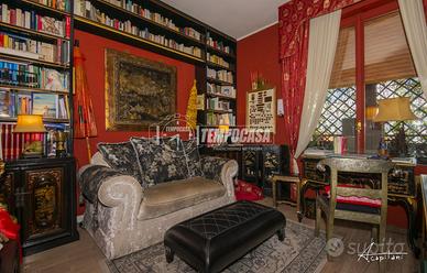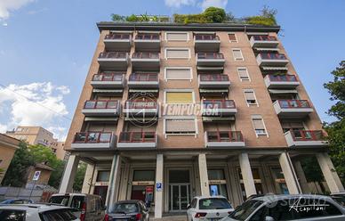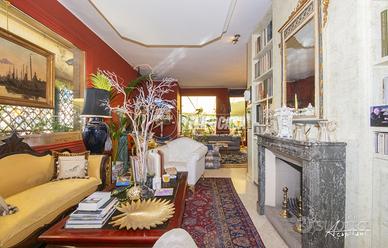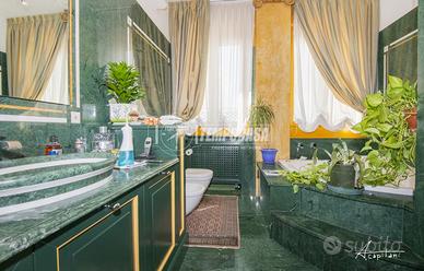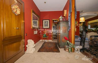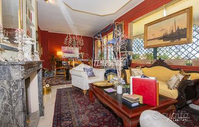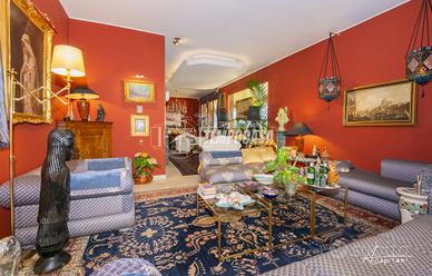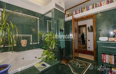 La zona notte è ben separata e accoglie quattro camere da letto molto spaziose e due bagni completamente ristrutturati recentemente con materiali, impiantistica e accessori di pregio. L'appartamento è dotato di aria condizionata in tutti gli ambienti con singoli split, infissi con doppi vetri, porta blindata e finiture curate, che lo rendono già da subito un'abitazione elegante e confortevole. Completano la proprietà una cantina al piano seminterrato e un comodo garage, non scontato in questa zona ed un posto macchina di proprietà dotato di alimentazione certificata per veicoli elettrici collocato in una sala garage ben accessibile.