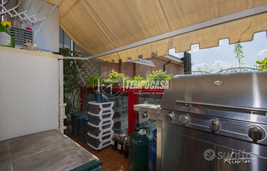 La terrazza ha una bellissima esposizione a sud ed est, ideale per godere del sole per gran parte della giornata, ben schermata l'estate da tenda e ampio ombrell - Classe: G