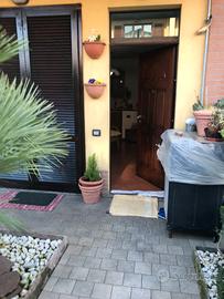Appartamento bilocale in contesto di villette a schiera con appartamenti piano terra con taverna e appartamento al primo piano . Il bilocale presenta al piano terra il giardino e ingresso con salotto cucina una camera e un bagno , la scala interna porta alla taverna che è composta da un bagno lavanderia con vasca,locale taverna e uscita al piano box che è compreso nella prezzo. 80 mq. tra sopra e sotto.Abitato da una sola signora di 73 anni.Ottimo investimento invece di comprare bot che ti rendono pochissimo.Attualmente la ca sa vale 115000 mila Euro.Quando sarà varrà di più. Le spese condominiali le paga la Sig.ra non ci sono tasse ne imu da pagare. Tranne il rogito ed eventuali spese straordinarie.