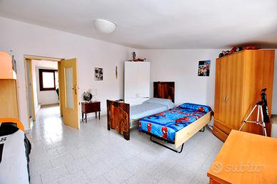 Camera da letto ampia e luminosa con vista, bagno di servizio, e stanza con angolo cottura completa di ripostiglio, ideale come zona indipendente, studio o spazio per ospiti.